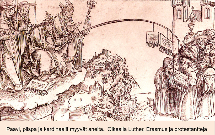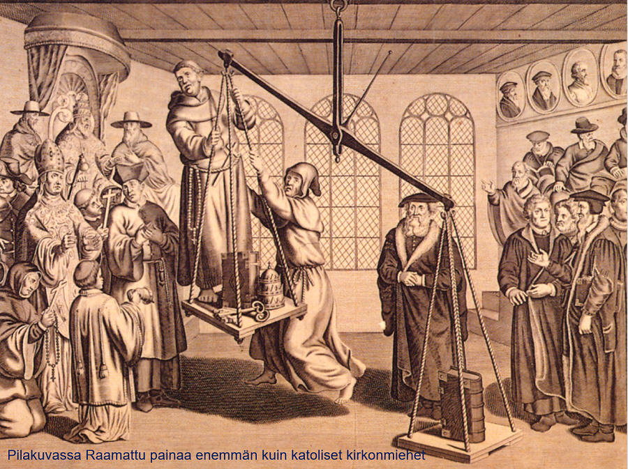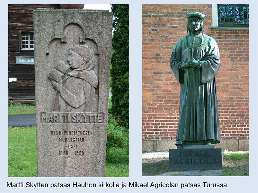 G. Uskonpuhdistus ja puhdasoppisuus G1. Saksalainen Luther ja suomalainen Agricola irrottautuivat paavin kirkon harhaopeista ja loivat uuden protestanttisen teologian kaikelle kansalle. ![]() G2. "Uskonpuhdistus" ei tapahtunut käden käänteessä, vaan siihen tarvittiin lähes 200 vuotta. Suomen viimeinen katolinen piispa oli Laukon Arvid Kurki. ![]() G3. Suomen ensimmäinen protestanttinen piispa oli Martti Skytte (n. 1460 – 1550). Hän oli Laukon Klaus Kurjen Birgitta-sisaren poika. ![]() G4. Uskonpuhdistus tuotti myös kiivaan puhdasoppisuuden ajan, mikä näkyi noitavainoina ja lukemattomina 1600-luvun sotina. Muuan kuuluisimmista komppanioista oli Vesilahden komppania, johon kuului useita Pirkanmaan pitäjiä: ![]() |