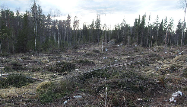 Niin, tänne Nikkilänvuoren eteläpuolelle polku karttojen mukaan jatkuu. Lemmettyjärvi on noin kilometrin päässä tästä kuvan vasemman reunan metsikön takana. Kuten selvästi näkyy, nykyajan tehometsätalous on varmin polkujen hävittäjä. Kaiken lisäksi risukossa on vaikea kulkea. Pienen etsiskelyn perusteella polku näyttäisi kulkeneen kuvan oikeanpuoleista reunaa melko suoraan kohti pientä nyppylää. Oikealla olevan kuvan kivet sijaitsevat nyppylälle tultaessa hakkuualueen tuolla reunalla. |