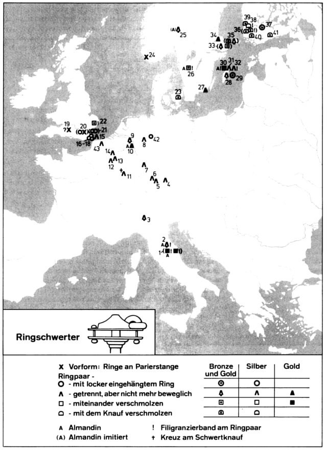 Lähteet: Evison, Vera: The Dover Ring-sword and Other Sword-rings and Beads. Archaelogia or Miscellaneus Tracts relating to Antiquity. Volume CI. Oxford MCMLXVII. Hackman, Alfred: Suomen rengasmiekat. Suomen museo XXXV 1928. Hackman Alfred: Två svärdsknappar från folkvandringstiden- FM 1-2, 1895. Linna Martti: Suomen vanhemmista aluejaoista. Muinaistutkija 4/1996. Salmo, Helmer: Die Waffen der Merowingerzeit in Finnland. SMYA XLII:1, 1938. Schauman-Lönnqvist Marianne: Kontinentaler und skandinavischer Import als Indikator sozialer Strukturen der Kaiser- und Völkerwanderungszeit in Finnland. Praehistorische Zeitschrift 67, heft 2, 1992 Steuer Heiko: Helm und Ringschwert. Prunkbewaffnung und Rangabzeichen germanischer Krieger. Eine ÜbersichtStudien zur Sachsenforschung 6, 1987. |