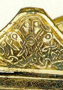 Ylhäällä keskellä "Ikuturson" kuva Euran Pappilanmäen toistaiseksi vanhimman löydetyn loistomiekan huotrasta. Tämä häränpäinen kalanpyrstöinen mielikuvituseläin, jolla näyttäisi olevan katkaravut raajoina, saattaa kuvata myös kansanrunoistamme tuttua "tuonen härkää", jolla "suu tulin palavi, kita kiukain lämpiää" (ks. Kalevanpojat -sivuston aloitussivu). Siitä voi myös hahmottaa "lohikäärmeen" eli lohenpyrstöisen käärmeen. Alunperin sen esikuva kuitenkin lienee ollut mursu, jota erilaiset, etupäässä merelliset, mytologiset uskomukset ovat muokanneet. Se lienee myös Merovinkien hallitsijasuvun tunnus (Lehtosalo-Hilander 2000, 180-181 sekä Müller-Wille 1980, 146). Myös Kaarle Krohnin artikkelissa "Kaleva und seine Sippe" (Kaleva ja hänen sukunsa) tulee esiin (s.20) kansanrunoutemme Kalevanpoikien yhteys pitkän ja kauniin lainehtivan tukan omanneisiin merovinkikuninkaisiin (termi yksikössä: "rex crinitus", käännetty yleensä muodossa "pitkätukkainen kuningas", joiksi merovinkihallitsijoita myös kutsuttiin.)