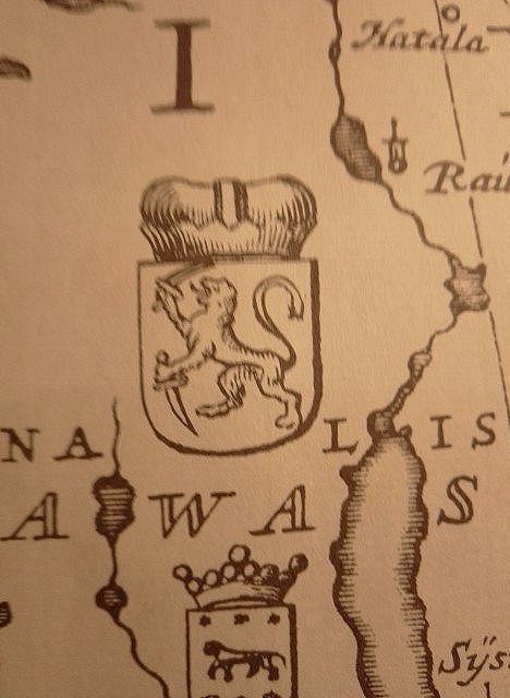 ![]() Suomen suuriruhtinaskunnan vaakuna 1600-luvulla. Erik Dahlberg: NOVA ET ACCVURATA ORBIS ARCTOI, 1696. |