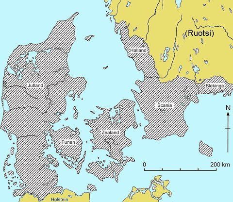 s. 199. Annales Ryenses. (Ryd-annaalit, tanskalainen käännös.) 1202. Biscop Anders oc hans bröthaere fördae haer i Finland. s. 285. Chronica Jutensis (Jyllannin kronikka) s. 62. Annales Lundensis. (Lundin annaalit) 1227. Hoc anno capti sunt Dani apud Bornhofaeth in die beati Magdalene, et rex amisit victoriam. Vuosi 1227. Tänä vuonna tanskalaiset jäivät vangeiksi Bornhövedin