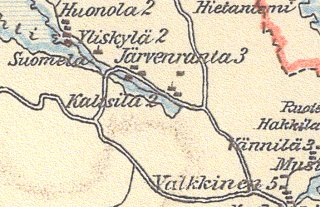 Vuoden 1893 kartassa tie Suomelan kautta kirkonkylään kulkee edelleen Kaltsilan kautta. Numero kylän nimen jälkeen tarkoittaa kylän talojen lukumäärää.
