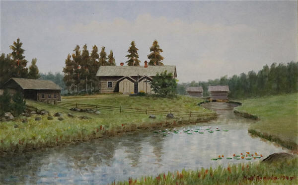 Taiteilija Martti Annalan näkemys Haapaniemen talosta ja Haamun myllystä 1975.