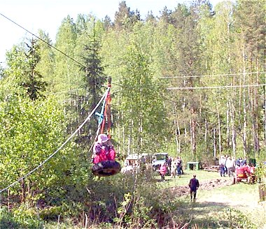 Tämä pieni välipyrähdys ei ole kowaa teknolokiaa - tämä on suorastaan hurjaa teknolokiaa! Pikkuihminen kiitää turvavöihin kiinnitettynä vinhaa vauhtia autonrenkaan päällä kallion laelta kohti kaukaisen pellon toista laitaa. Vauhdin hurmaa! Kuvaaja ei menisi vaijerirakettiin vaikka maksettaisiin. Pikkuväen jono vauhdikkaalle retkelle oli kuitenkin lähes sata metriä pitkä! Kaiken kaikkiaan Kowan Teknolokian Päivät® -tapahtuma on melko miehistä touhua. Olisiko niin, että äidit lykkäävät lapset isien kyytiin kohti Rämsöötä - ja itse pitävät vapaapäivää! No, kyllähän paikalla oli paljon naisiakin. Heitä varten löytyi nytkin pehmeämpää teknolokiaa ja paljon muuta katseltavaa.