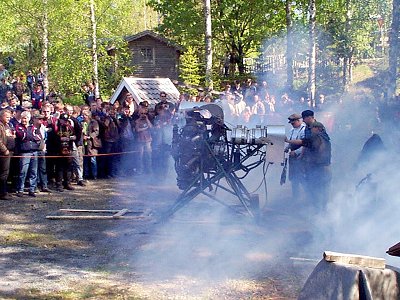Ihminen on suurellinen ja turhamainen, eikä sille asialle voi mitään. Jotta tämä puoli tulisi tyydytetyksi, Rämsöössä pitää aina olla jokin hirvittävää meteliä pitävä kone. Hyvä näin, purkautuvatpahan turhat paineet. Tällä kertaa huomion keskipisteeksi muodostui hävittäjälentokoneen tähtimoottori, jonka Teknolokiakeskuksen väki oli entistänyt romusta. Shuctsov M-63:n jokainen sylinteri on n. 3,3 litran kokoinen, joten 9:n sylinterin yhteistilavuudeksi tulee lähes 30 litraa. Korkeaoktaanista bensiiniä kuluu lähes 500 litraa tunnissa, ja moottori kehittää 1000 hevosvoimaa! Tämänhetkinen pikkupotkuri on vain jäähdytyksen vuoksi; alkuperäinen 3-metrinen kai irrottaisi kapistuksen maatelineistään ja hökötys pyyhältäisi äkkiä taivaanrannan taakse.