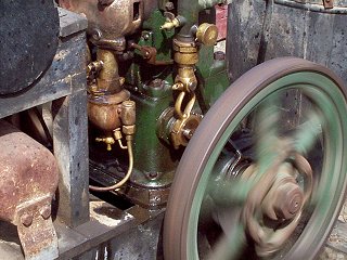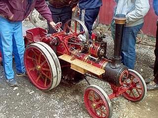 Tämä kuva taas kaipaa selitystä. Kuvassa on nimittäin aiwan aito höyryllä kulkeva lokomobiili, pienoismalli isosta höyryjuhdasta. Kun pesän virittää oikein kowaan praasuun, niin kone puuskuttaa ja hyökkää julmalla vauhdilla eteenpäin ja ohjaajalla on täysi työ pitää höryformula radallaan. Meteli on vain murto-osa Ferrareiden pörinästä.