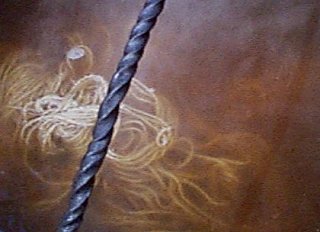 Musta pata, tuli ja höyry viittaavat kowaan teknologiaan, mutta nuori tyttö vahtimassa niitä antaa vihjeen aivan muusta. Padassa keitetään lankoja luonnosta saatujen väriaineiden kanssa. Keksintö on ikiwanha ja vaatii äärimmäistä asiantuntemusta. Työ on tehtävä juuri tietynlaisen lammen rannalla ja valvojan istuma-asennonkin on oltava oikea. Näin saadaan lankojen väreihin ikiaikojen kulutusta kestävää tunnelmaa.