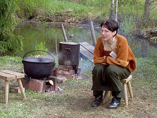 Mäkiuunin edessä oli koko ajan tungosta. Rieviä olisi mennyt enemmänkin, vaan olipa ehtoisalla rievänpaistajalla vain yksi mäkiuuni käytössään. Voisiko uuden vuosituhannen teknolokiapäiville rakentaa näitä uuneja enemmän, että riittäisi leipää useammille?