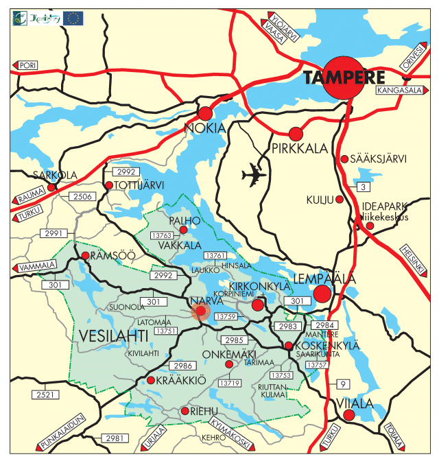 Narvan kylä sijaitsee keskellä Vesilahtea ja usean kaupungin ympäröimänä. Maantiet ovat ikivanhaa perua. Sen vuoksi ne olivat aiemmin kovin mutkaisia, mäkisiä ja autoliikenteelle sopimattomia. Niinpä paikkakunnalle on ollut hyvinkin perusteltua nimetä historiallisia kohteita seuraileva matkailureitti Klaus Kurjen tie. Tiestö on kuitenkin viime vuosina parantunut huomattavasti ja paranemista tapahtuu yhä. Tielaitos on onneksi kunnioittanut paikkakunnan perinteitä eikä ole tehnyt väkivaltaisia leikkauksia luontoon. Vesilahden tiet ovat edelleen maisemaan soveltuvia. Ikivanha tie Narvan ja Vammalan välillä eli Narvanmatkantie oli parisataa vuotta sellaisenaan, mutta tien peruskorjaus valmistui lopullisesti vuonna 2006. Asfaltoituja teitä ovat tämän lisäksi tiet Narvasta Lempäälään, Viialaan, Urjalaan ja Tottijärvelle (Nokialle), alla olevassa kartassa harmaalla merkityt ovat sorateitä. Kaikki tiet siis johtavat Narvaan: