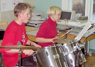 Niin, saimmeko luvan soittaa hieman KOVEMPAA. Täältä tulee tasaista rytmiä ja kovaa! Rummusto on niin mielenkiintoinen soitin, että se vetää magneetin tavoin luokseen eri mittaisia taiteilijoita. Leireillä rummut soivat aina. |