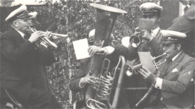 Soittokunta kierteli vuoden 1970 Narvan Markkinoilla pitkin kylänraittia Mallasjuoman "maskotteina".