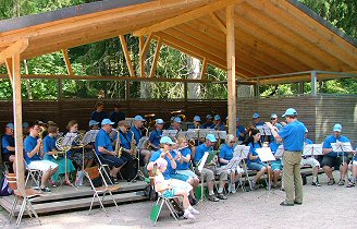 Narvan Soittokunta Tribergissä 5.7.2006, Saksan suurimman vesiputouksen luona. |