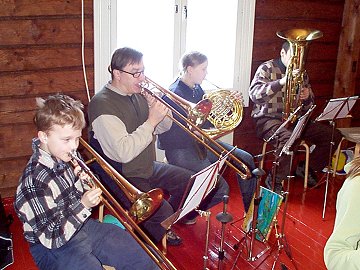 Kaksi pasuunaa, käyrätorvi ja tuuba