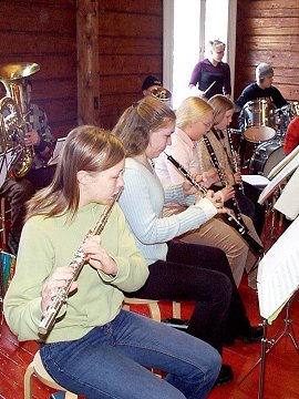 Huilu, oboe ja klarinetteja Narvan Soittokunnan harjoitustilat sijaitsevat Narvan Seurojentalon yläkerrassa. |