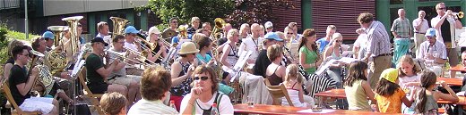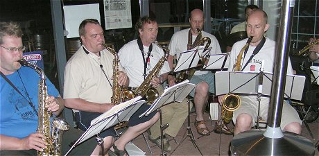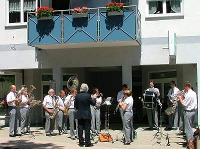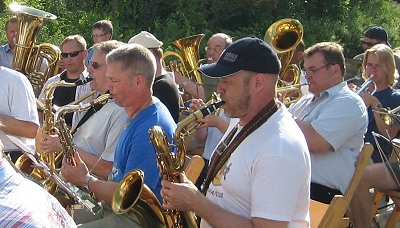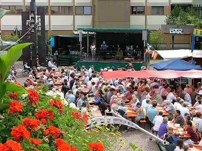 Lauantai 8.7.2006 NBB soittoharjoitukset aamulla. Iltapäivällä NSK ja NBB esiintyivät Stadtfest 2006 juhlilla torille pystytetyllä esiintymislavalla. Noin 10 soittajaa soitti myöskin saksalaisen nuoriso-orkesterin mukana. Illan mittaan Ali Baba soitteli ennen MM-jalkapallon pronssiottelua yleisölle Havanna-baarin ulkotiloissa. No se oikea Havanna-baari on kylläkin toisessa rakennuksessa, mutta ei se mitään. Saksa voitti Portugalin 3-1, ja juhlat taasen kaupungilla käyntiin. Täytyy sanoa, että täällä jalkapallon merkitys on aivan eri luokkaa kuin Suomessa.