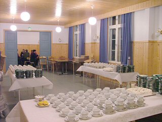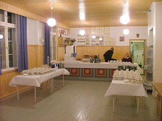 Salin pöydät voi järjestellä sen mukaisesti, mitä ohjelma, tarjoilu, oheistoiminnot tai tilaisuuden luonne vaatii. Ruokapitojen järjestäminen sujuu kätevästi ja vaivattomasti, jos antaa jonkun pitopalvelun huolehtia kaikesta tarjottavasta. Keittiössä on riittävästi tilaa tarjottavien säilytykseen ja siellä voi tietenkin keittää perunat, kuumentaa laatikot ja kastikkeet ja keittää kahvit.
